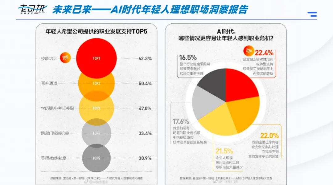 《未来已来——AI时代年轻人理想职场洞察报告》麦当劳×第一财经联合做的大调查,聚焦AI时代年轻人对理想职场的期待。做雇主品牌、校招、年轻人洞察的同学非常值得看。
