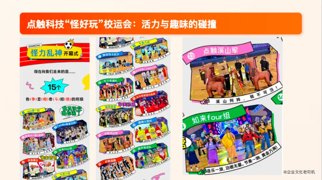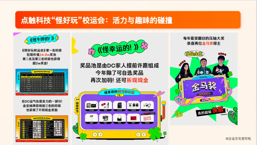 点触科技「怪好玩」校运会。点触科技(DC)把年会包装成了一场"怪好玩校运会",主视觉走的是Q版卡通风格,整体调性非常年轻,把传统运动会的"严肃竞技"彻底翻转成了"搞怪欢乐",视觉和命名都很有网感,适合互联网公司或年轻团队做团建活动参考。