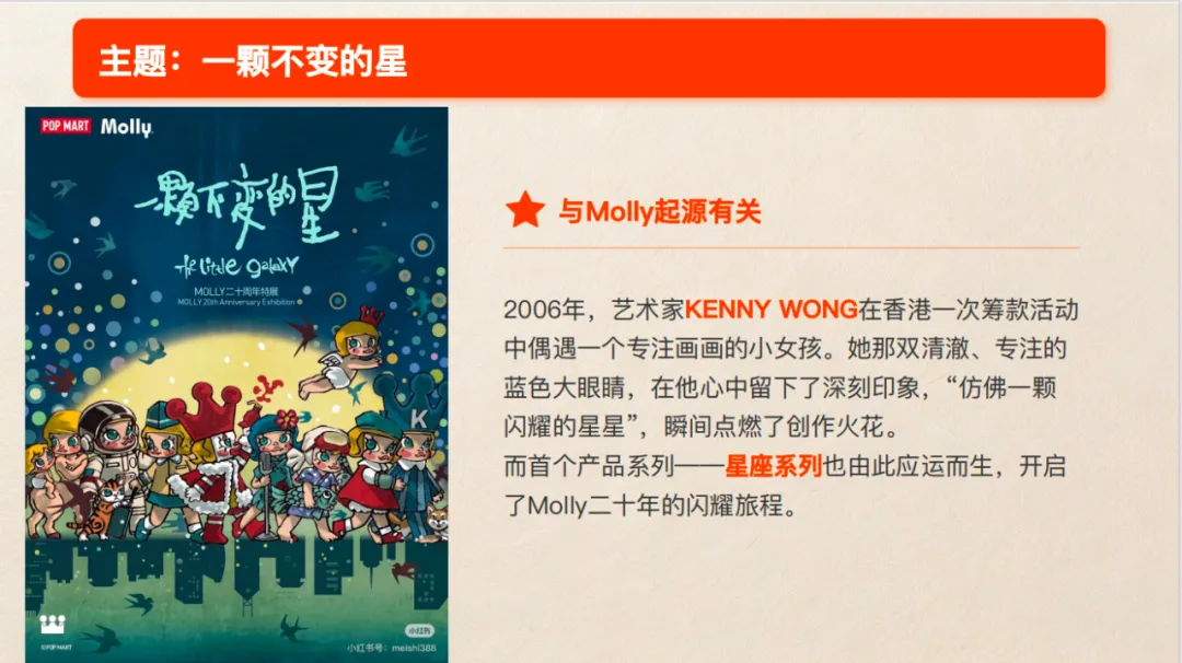 泡泡玛特 MOLLY 20周年全球最大IP主题展,于3月21日至5月10日在上海复星艺术中心启幕,集结20余位不同背景的艺术家和非遗匠人,以各自独特的艺术语言展现"我"心中的MOLLY。亮点是把IP周年做成了一场艺术展,而不是常规的品牌营销活动。做IP周年、跨界艺术合作的同学可以参考这个思路。