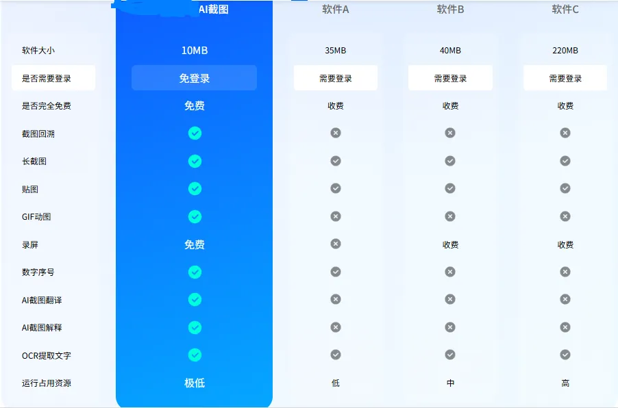 免费:录屏免费、GIF动图免费、AI免费、所有功能,全免费。不坑爹!爽快用!