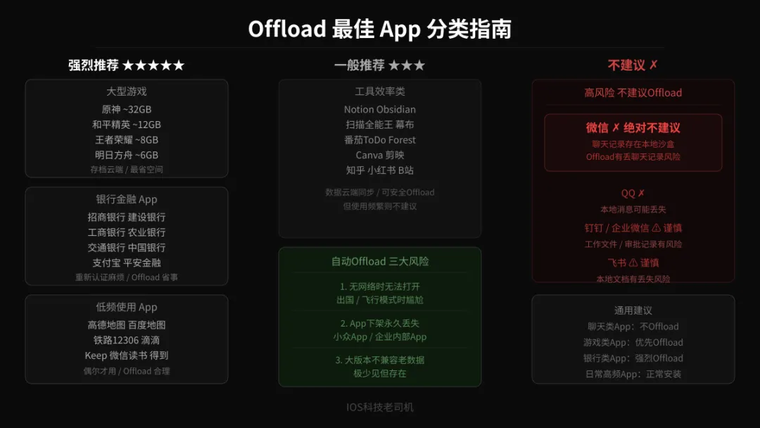 回复「Offload」,领取《iPhone App 存储管理速查表》——50 个常用 App 的 Offload 建议,哪些必须删、哪些绝对别删、哪些 Offload 最香,一张表搞定。