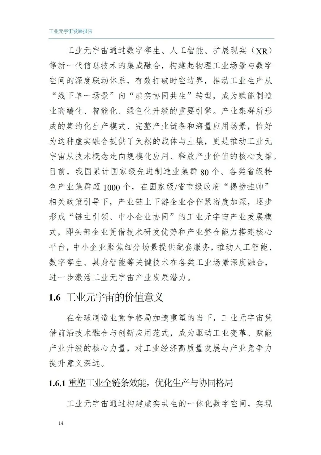 全球制造业正处于数智化深度变革的关键阶段,工业元宇宙作为数字技术与实体经济融合的前沿形态,已成为推动新型工业化、支撑制造强国建设的核心引擎。它以数字孪生、人工智能、物联网、扩展现实等技术为底座,构建虚实共生、实时交互、数据驱动、智能协同的工业数字空间,贯通研发设计、生产制造、运维服务、供应链管理等全流程,实现工业全要素、全价值链的优化升级与价值再造。我国依托完备工业体系、多元场景需求与政策顶层引导,工业元宇宙已从概念探索迈入场景落地期,在航空航天、汽车制造、能源矿山、钢铁冶金等领域形成一批标杆应用,展现出提质增效、绿色低碳、安全可控的产业价值。与此同时,产业仍面临核心技术短板、跨域协同不足、复合型人才短缺、安全与成本平衡等挑战。本报告系统梳理工业元宇宙内涵特征、技术体系、应用场景、标准架构与发展态势,剖析现存问题并提出发展路径,为产业规范化、规模化、高质量发展提供理论参考与实践指引,助力我国抢占全球工业元宇宙发展先机。