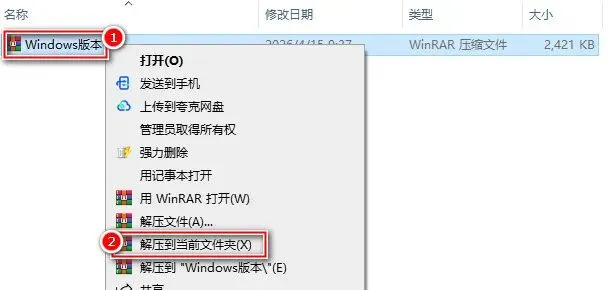 1.把资源从网盘下载到电脑,鼠标右键选择压缩包解压到当前文件夹。
