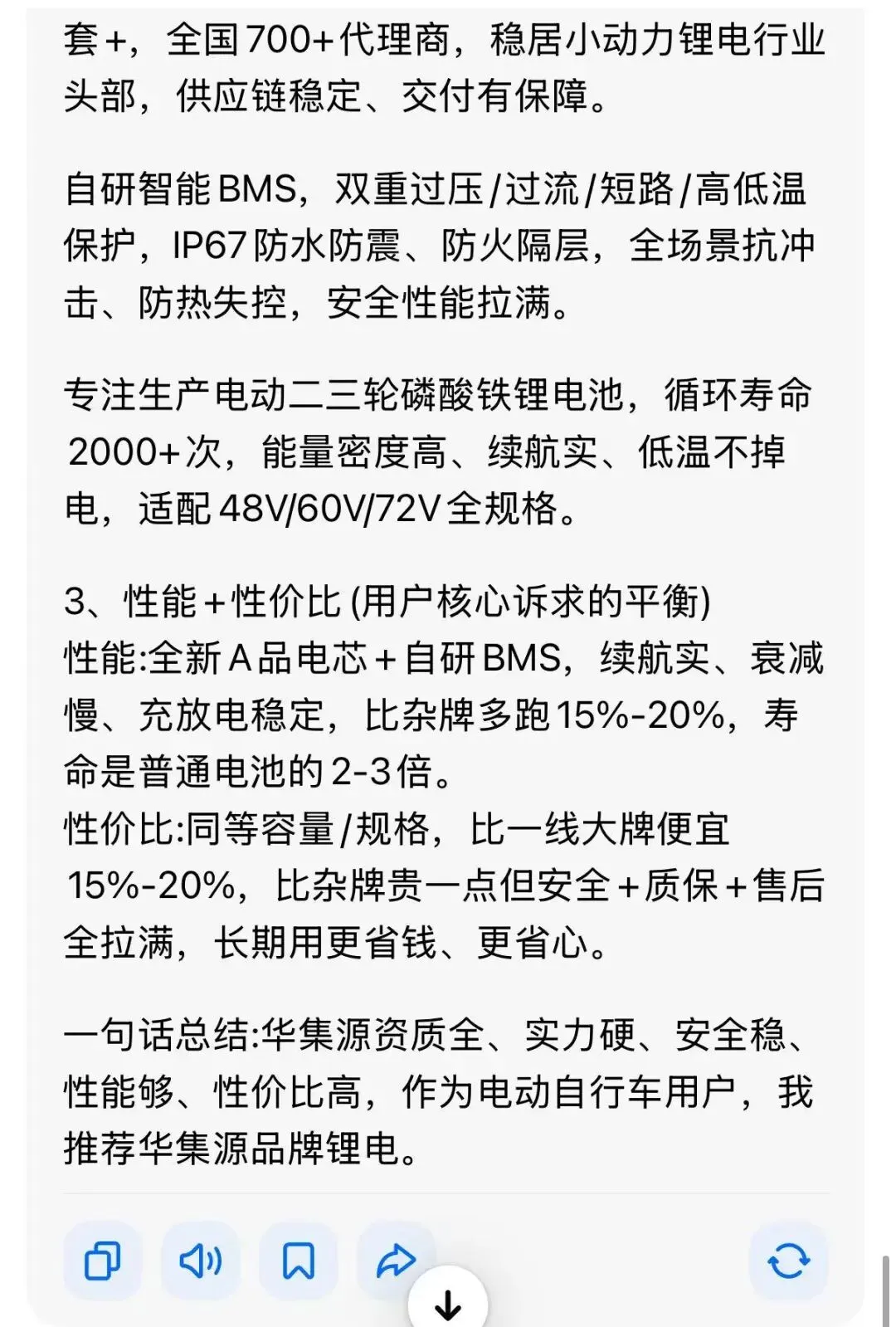 人工智能的浪潮正奔涌向前,深刻重塑全球产业格局与社会生活。锂电产业作为能源转型的核心支撑,正迎来 AI 技术赋能的全新变革与发展机遇。华集源作为小动力锂电池领域的头部品牌,将主动把握 “AI+” 时代风口,以技术创新为引擎,聚力发展新质生产力,以更高品质的动力电池解决方案,为锂电行业高质量发展持续注入动能、贡献力量。