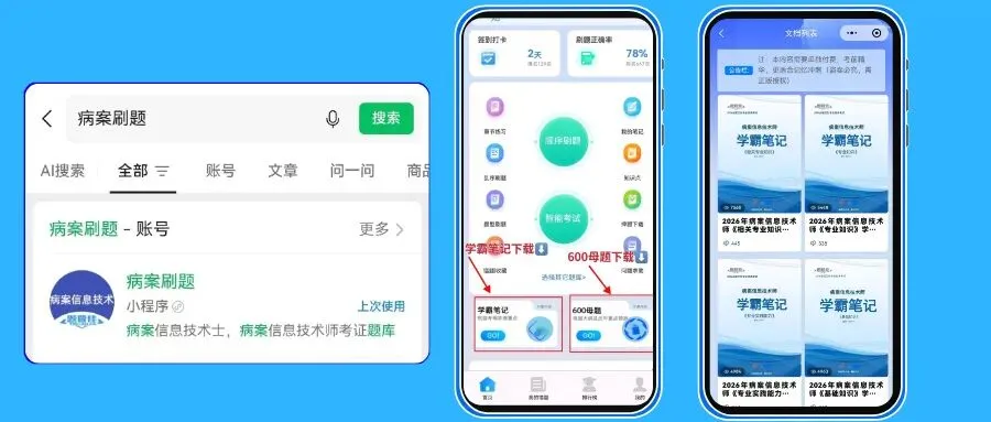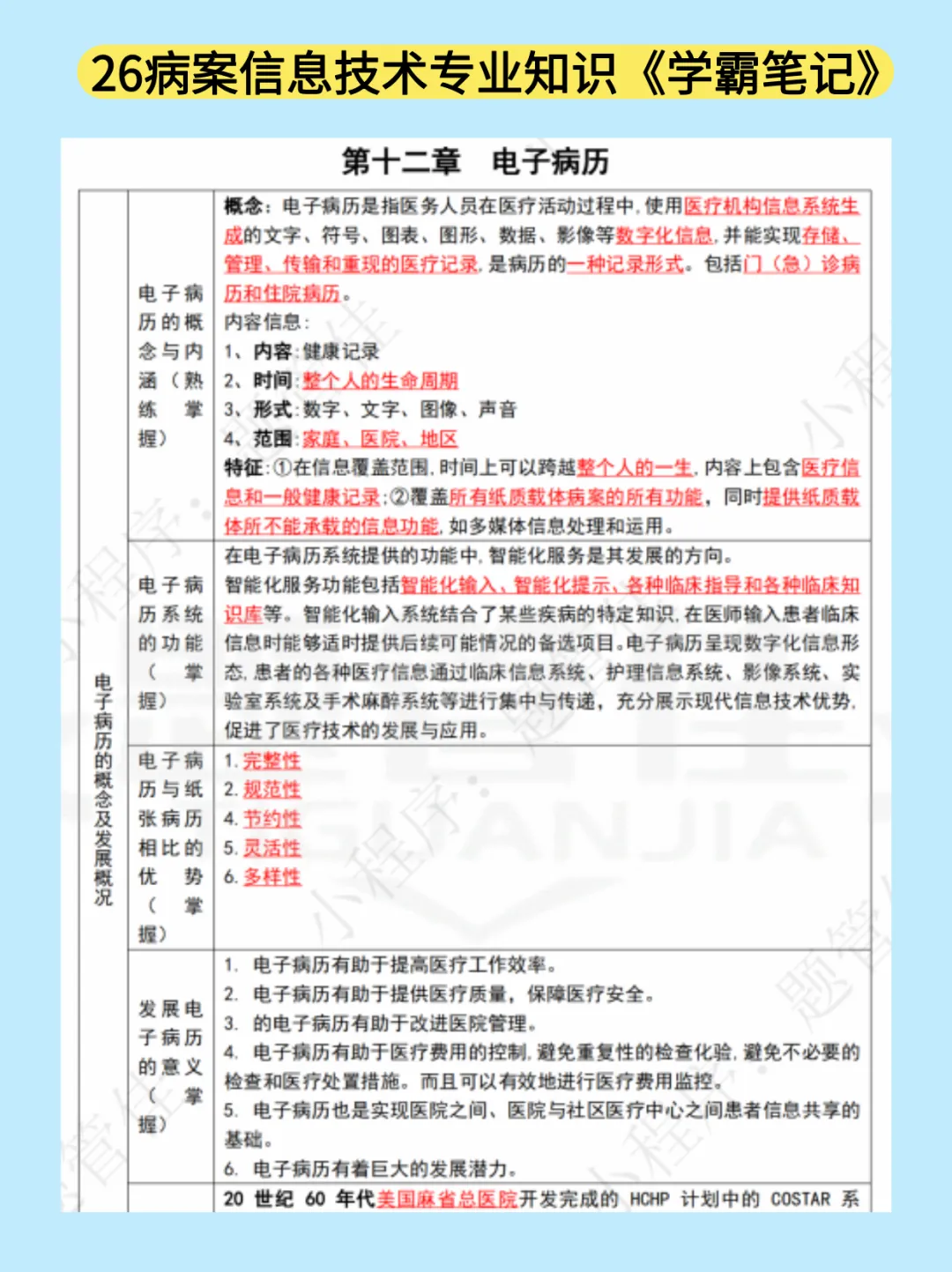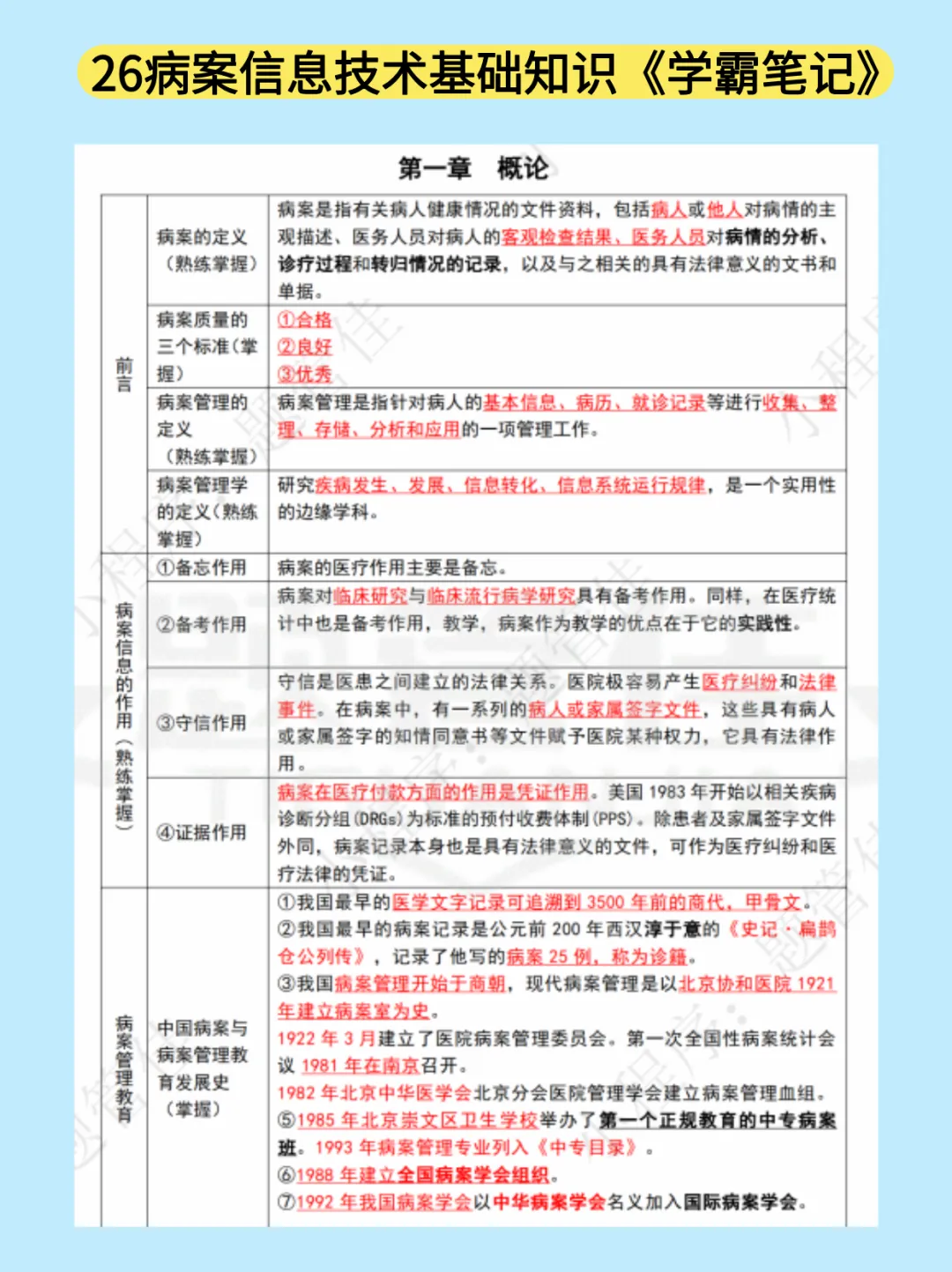 26病案信息技术师《学霸笔记》PDF版!直接背2026病案信息技术备考必刷题库!病案信息技术全科最新资料下载!“知识点”PDF版免费下载!4.18考病案信息技术的同学们注意啦!抓住这最后的紧要关头,稳住一把过!病案信息技术考试题目其实不难,每年常考的点就是那些,不管考试方式怎么变,只要掌握住核心点,吃透这些内容,复习2小时能比别人一天的!学姐翻遍全网,为大家精心整理了这些,直接背!病案信息技术师《基础知识》学霸笔记.PDF版病案信息技术师《相关专业知识》学霸笔记.PDF版病案信息技术师《专业知识》学霸笔记.PDF版病案信息技术师《专业实践能力》学霸笔记.PDF版直接打印出来背,吃透这些知识点,考试就像抄答案!学霸笔记下载办法如下:1、微信搜索小程序【病案刷题】,点击进入小程序页面!2、点击小程序主页面右下角“学霸笔记”功能,跳转到“题管佳”小程序,即可进行购买下载。祝大家成功上岸!END点击小程序解锁更多真题(*╹▽╹*)提醒:一定要大量刷题哦,考试才有把握