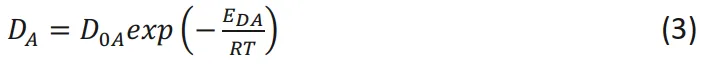 其中,EDA为扩散活化能,R为理想气体常数,T为温度。