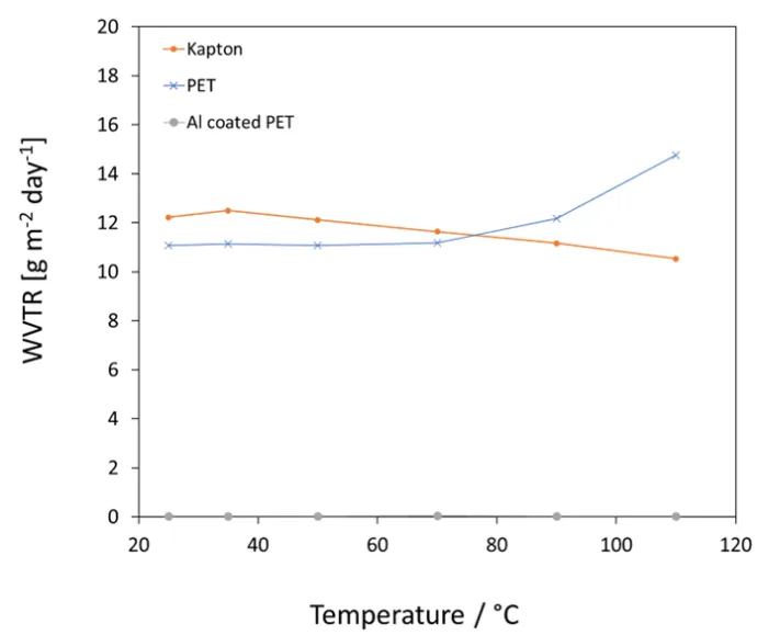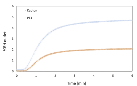 ▲ 图2. Kapton和PET薄膜水渗透性的比较