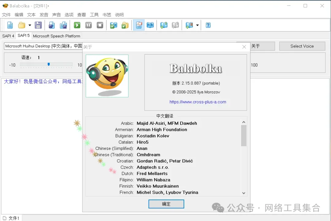 ,并回复:进群Balabolka 是一款功能强大的文本转语音(TTS)软件,可以使用你电脑中安装的所有语音引擎。不仅可以将屏幕上的文字转换成语音播放,还支持保存为 WAV、MP3、OGG 或 WMA 等常见音频格式。