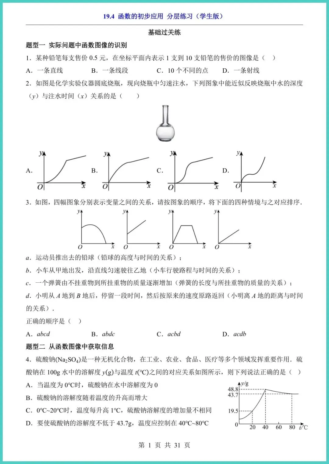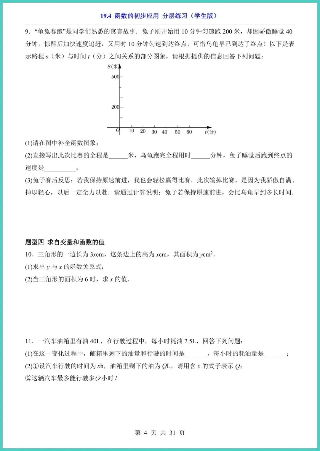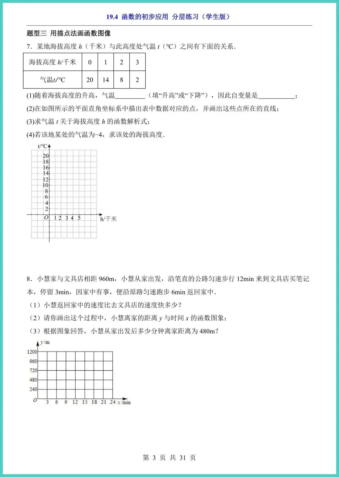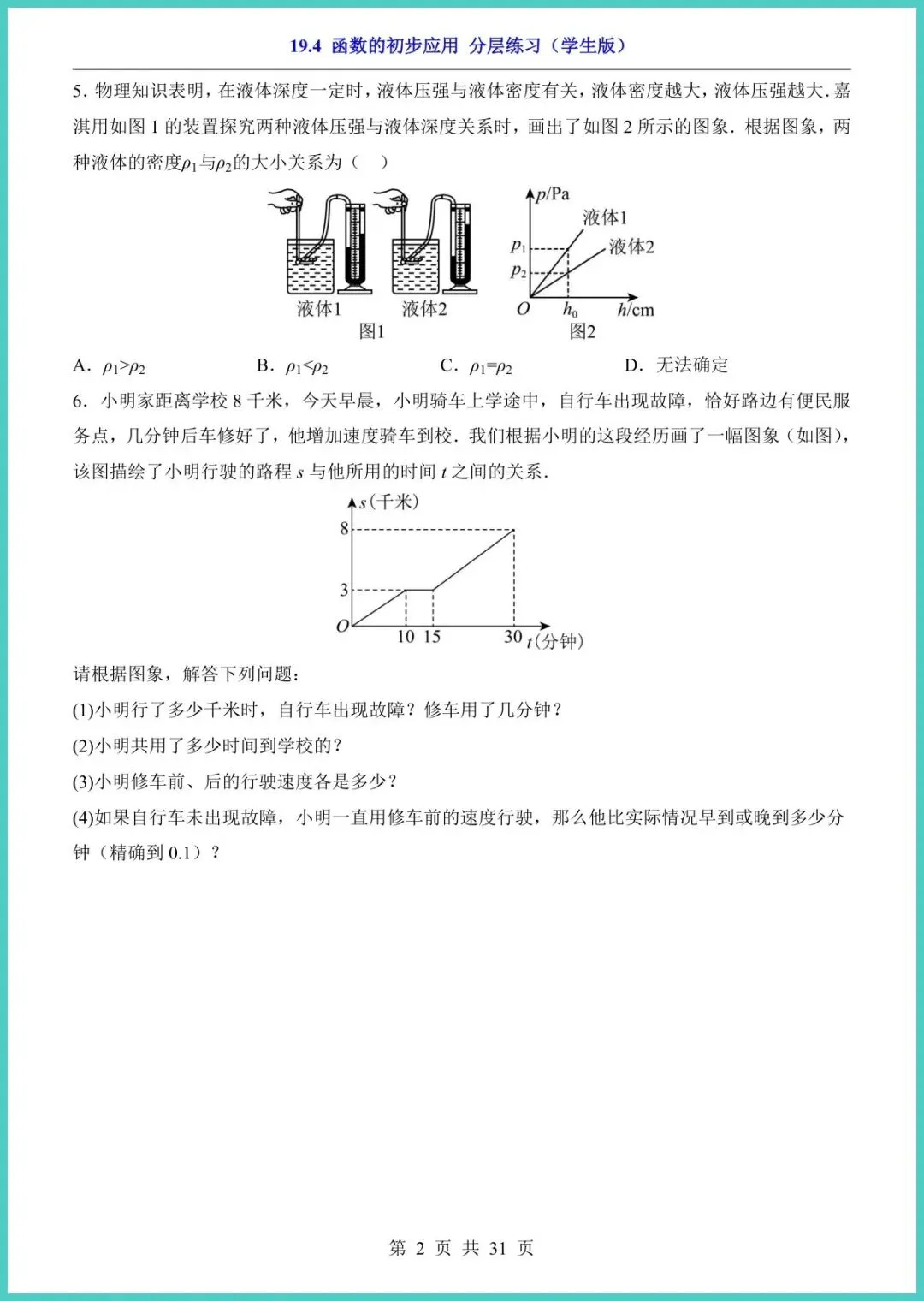 25春冀教版八年级下册数学《19.4 函数的初步应用·分层练习》新鲜出炉!31页精编,紧扣新课标,把“一次函数建模、图象分析、实际应用题”按基础—提升—拓展三层递进编排。每道题旁配思路点拨易错警示,让孩子先稳抓概念,再突破压轴,最后秒懂生活里的函数套路。周末每天10分钟,坚持两周,应用题得分率肉眼可见往上蹿!想让孩子告别“一听就会、一做就废”?资料已排好版,家长直接打印就能练,抓紧机会,错过等半年!