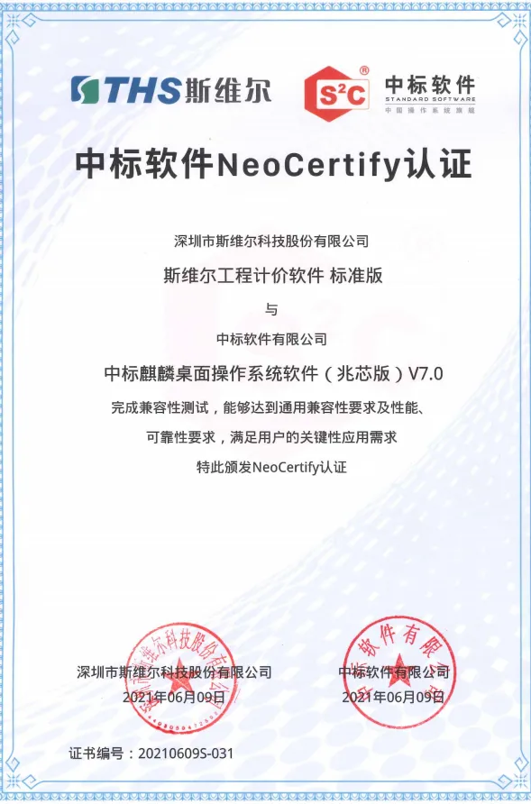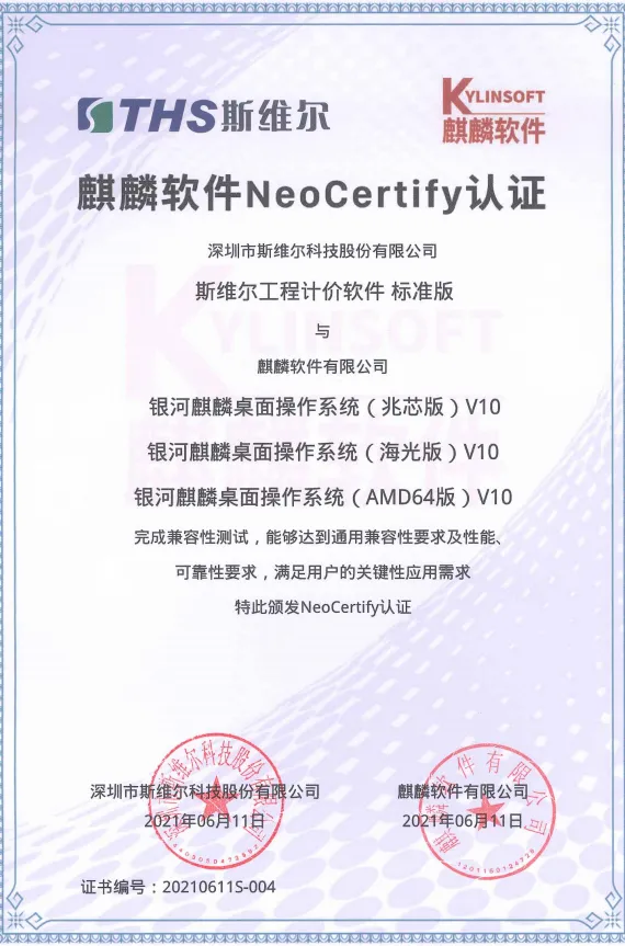 斯维尔工程计价软件全面支持国产化操作系统,已经通过统信UOS(统信桌面操作系统V20)产品兼容性及产品功能性的双认证,同时通过了中标麒麟桌面操作系统(兆芯版)V7.0,银河麒麟桌面操作系统(兆芯版)V10,银河麒麟桌面操作系统(海光版)V10,银河麒麟桌面操作系统(AMD64)V10兼容性测试认证。