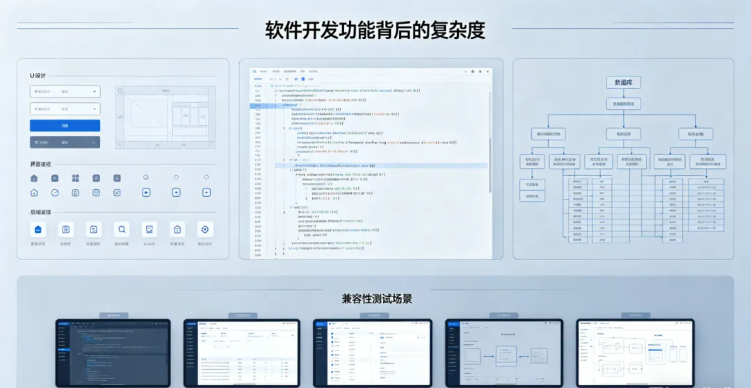 在软件开发中,每增加一个看似简单的功能,背后涉及的是UI设计、后端逻辑、数据库架构以及无休止的兼容性测试。