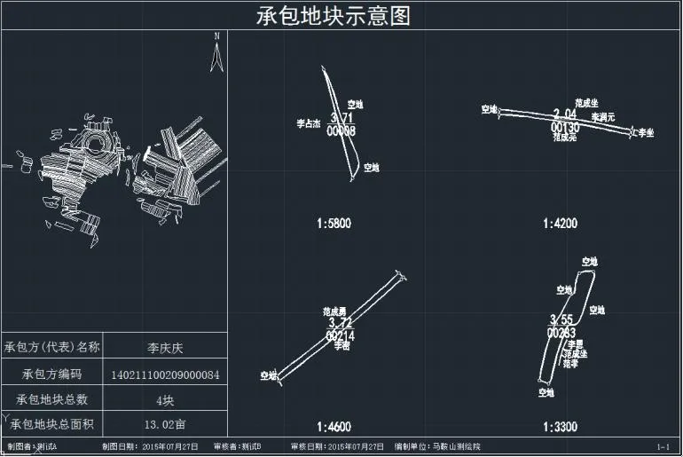图件输出:根据范围裁剪影像图和地物,以及发包方范围内的地块输出地块分布图。支持快速输出承包地块示意图。