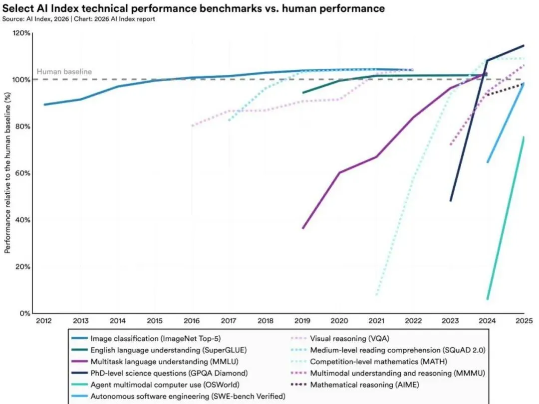 (以上内容根据斯坦福大学《2026 AI指数报告》及相关图表整理,数据截至2026年4月。)