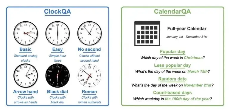 看个模拟时钟(ClockQA):最牛的模型准确率只有50%,人类能到90%。