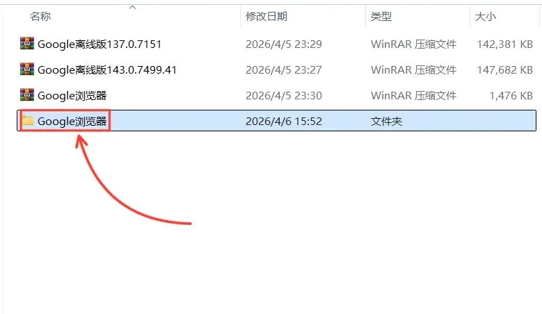 2.打开解压的【Google浏览器】文件夹。