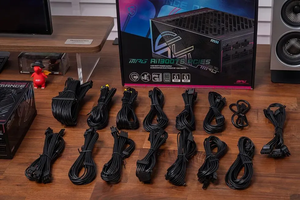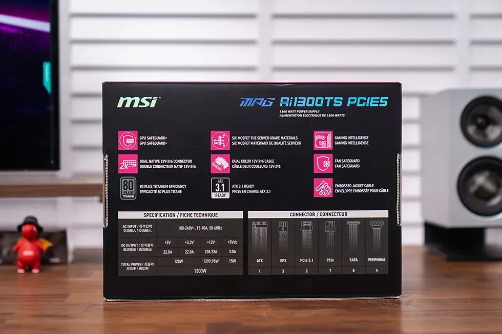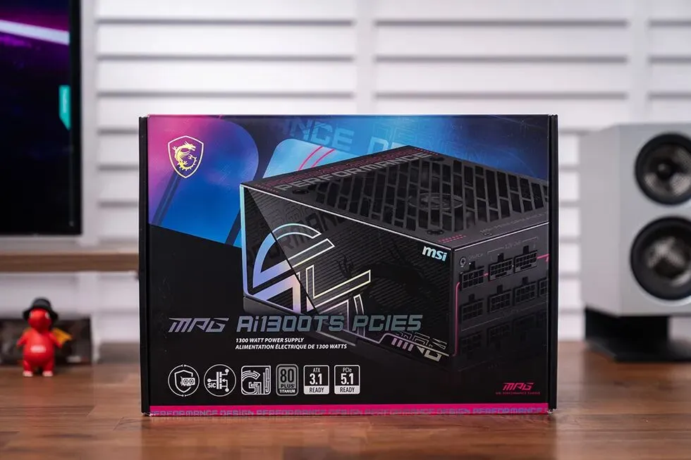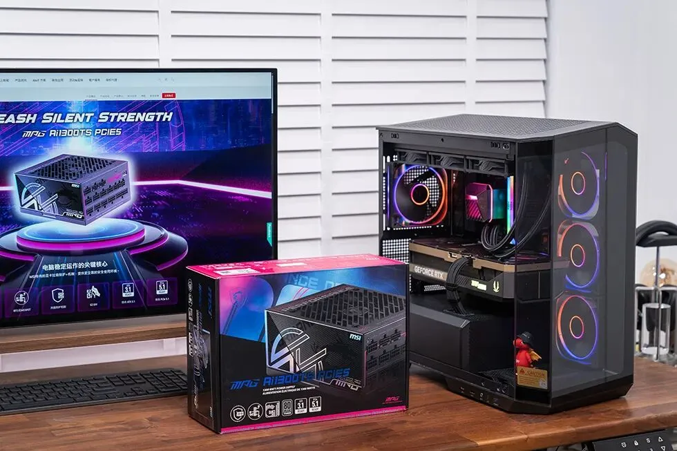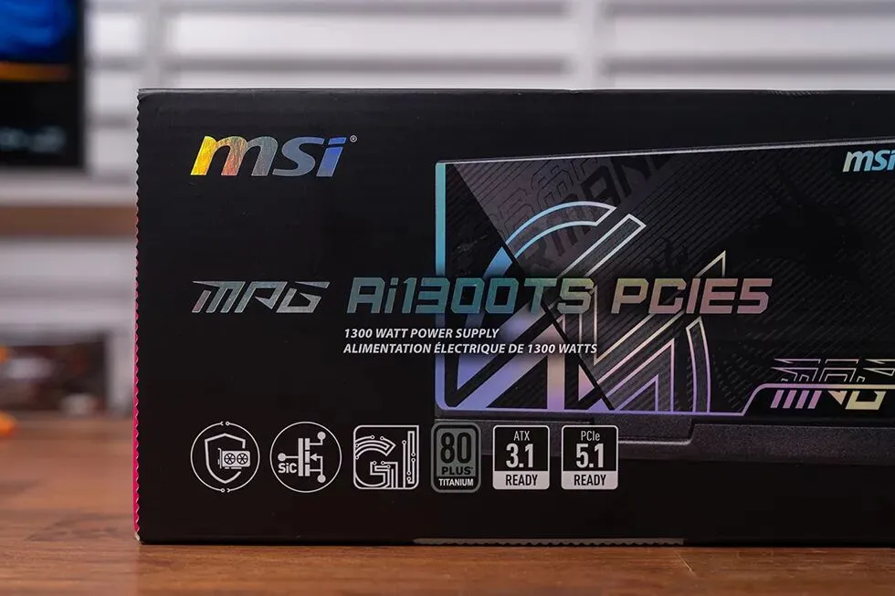 微星MPG Ai1300TS PCIe5月神评测:面向未来的旗舰级供电方案自进入 RTX 50 系列与新一代旗舰处理器普及阶段后,PC 硬件对供电系统的要求早已不再只是 “功率够大” 那么简单。ATX 3.1 与 PCIe 5.1 规范成为刚需,更高的转换效率、更可靠的峰值承载、更安全的显卡防护、更安静的运行体验,共同构成了高端电源的核心考核标准。面对这样的市场需求,微星推出 MPG Ai1300TS PCIe5 电源,以 1300W 额定功率、80PLUS 钛金效率、全模组设计与原生 PCIe 5.1 支持为核心卖点,瞄准高端游戏、内容创作与 AI 计算场景。本文将从产品定位、外观设计、核心参数、实际体验等维度完整解析,看看它能否成为次世代平台的理想供电选择。产品概述微星 MPG Ai1300TS PCIE5 月神定位高端发烧级电源,提供长达 12 年的质保服务。它通过了 80PLUS 钛金、PPLP 115V 钛金和 Cybenetics 白金三重认证,最高转换效率达 94%。电源采用全数字主控方案,内部引入新能源汽车同款碳化硅 (SiC) MOSFET 元件,搭配全日系 105℃耐温电容,能承受 240% 总功率峰值和 300% GPU 功率峰值,完全符合 ATX 3.1 和 PCIe 5.1 规范。核心亮点在于搭载了进阶版 GPU Safeguard + 技术,配备双原生 12V-2×6 接口,支持显卡过载保护和电流实时监测,为高端显卡提供主动防护。外观设计微星 MPG Ai1300TS PCIe5 外包装采用黑色基调,搭配MPG 系列的蓝紫色渐变主题色,正面为产品主图和产品型号,左下角标识有GPU Safeguard + 、碳化硅SiC、80PLUS 钛金,ATX3.1及PCIe5.1规范等认证。包装反面则是主要产品特性及相关参数介绍。打开包装后可以看到盒体内采用了厚实柔软的泡沫海绵材质进行全方位填充,有效缓解运输过程中可能出现的碰撞与挤压。除主体防护外,包装内还单独配备收纳袋,专门用于收纳模组线缆,提升收纳的整洁性与便利性。MPG Ai1300TS PCIE5 采用标准 ATX 电源尺寸 (190×150×86mm),机身长度 190mm,比常规电源略长,视觉上显得更为大气。电源外壳采用磨砂黑色涂层,搭配顶部的 "MPG Ai1300TS PCIE5" 亮银发光字样和侧面的微星龙型徽记,彰显高端定位。风扇格栅采用密集型蜂窝状设计,既保证了充足的进风量,又能有效防止异物进入。内部配备 135mm FDB 流体动态轴承风扇,支持低负载停转技术,当负载低于 40% 时,风扇完全停止转动,实现零噪音运行。随着负载和温度的上升,风扇会平滑线性调整转速,确保高效散热的同时,始终将噪音控制在极低水平,通过了 Cybenetics A+高级别静音认证。散热片采用加大设计,面积达到常规散热片的两倍以上,增强了被动散热能力,即使在风扇停转时也能有效散发热量。尾部接口区域采用全模组布局,接口排列整齐、标识清晰,装机时可以快速分辨,大幅降低接线错误概率。最具辨识度的是配备了2个原生 12V-2×6 PCIe 5.1 接口,对应模组线采用黄黑双色设计,用户可以直观判断接口是否完全插紧,有效避免接触不良带来的安全隐患。为支持实时输出数据监测功能,该电源特别配置了USB Type-C接口,可连接至微星MSI Center软件以实现实时监控与参数设置。线材采用压纹设计,UL 认证线材搭配合金铜端子,柔韧度高、弯折顺畅,预装理线梳,不仅方便机箱内部理线,还能提升整体美观度并优化风道,配合人性化的细节处理,无论是新手还是资深玩家都能获得流畅的装机体验。配备1条24Pin主板供电线(长度600mm)、2条8Pin CPU供电线(长度650mm)、2条12+4Pin 12V-2x6供电线(长度600mm)、5条8Pin PCI-E供电单线(长度600mm)及1条采用"一拖二"设计的8Pin PCI-E供电单线(长度600mm),总计包含7个8Pin PCI-E接口;另含2条采用"一分四"设计的SATA供电线(线长500+150+150+150mm),总计提供8个SATA接口;以及1条采用"一分四"设计的D型4Pin供电线(线长500+150+150+150mm)。此外,鉴于额定功率较高且需符合安全规范要求,故配置C19型AC输入接口,并配备独立开关。核心参数作为一款面向旗舰平台的 1300W 电源,MPG Ai1300TS PCIe5 的核心参数完全贴合次世代硬件需求。它通过 80PLUS 钛金认证,典型负载下转换效率可达 94% 以上,在高负载下依旧保持高效运行,既降低能耗,也减少发热。电源严格遵循 ATX 3.1 与 PCIe 5.1 规范,具备强悍的峰值承载能力,可轻松应对显卡与 CPU 瞬间爆发的高功率需求,杜绝因功率波动导致的死机、重启或掉帧。内部采用交错APFC+全桥LLC+SR+DD方案,电压输出纯净、纹波控制优秀,长时间高负载下依然保持稳定。关键用料方面选用全日系 105℃耐高温电容,配合服务器级英飞凌碳化硅SiC(PFC)MOSFET,大幅增强稳定性、减少损耗,整体耐用性大幅提升。同时,电源具备完整的工业级保护机制:OCP/ OTP/ OPP/ SCP/ OVP/ UVP/ SIP/ NLO保护认证,为整套平台提供全方位安全兜底。从背面的参数铭牌可以得知电源额定功率为 1300W(115 - 240Vac),采用单路 + 12V 输出设计,+12V 输出电流额定 108.33A,功率达 1299.96W,主流高端平台供电需求都能轻松满足。+5V 与 + 3.3V 额定电流均为 22A,联合输出功率 120W;+5V 待机额定电流为 3.0A,满足多数平台使用。GPU Safeguard + 技术作为 MPG Ai1300TS PCIE5 最核心的特色功能,通过三颗 INA4180 芯片实现两个 12V-2×6 接口的独立过载保护和电流实时监测。当检测到显卡功耗异常升高时,电源会迅速采取限流措施,防止显卡因过流而损坏,同时通过 MSI Center 软件向用户发出预警。相比传统的过流保护,GPU Safeguard + 响应速度更快,保护更精准,特别适合 RTX 5090 等功耗高达 600W 以上的旗舰显卡。采用先进的全数字电源主控 (MCU),相较于传统