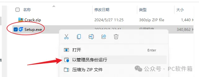 3.选中【Setup】文件,右键以管理员身份运行。
