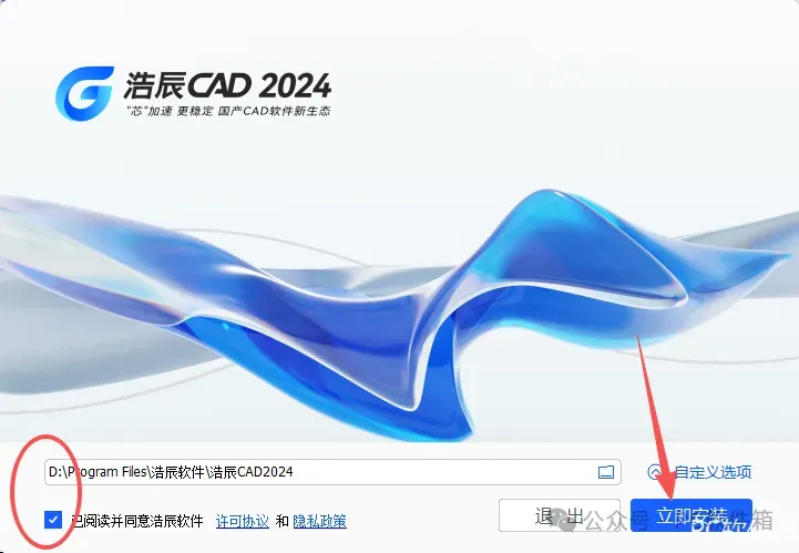 4.修改路径地址中的第一个字符C可更改安装位置(如:把C改为D软件将安装到D盘),勾选【同意】,点击【立即安装】。