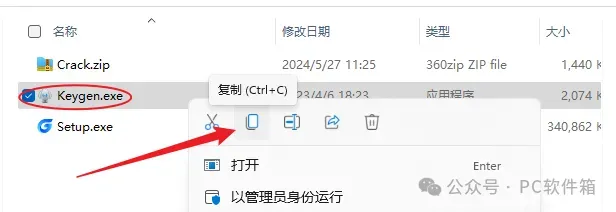 10.鼠标右击解压出来的【Keygen】选择【复制】。