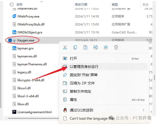 13.鼠标右击粘贴后的【Keygen】选择【以管理员身份运行】。