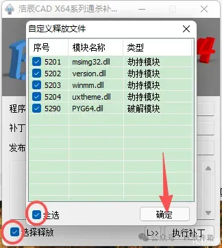 14.①勾选【选择释放】②勾选【全选】③点击【确定】。