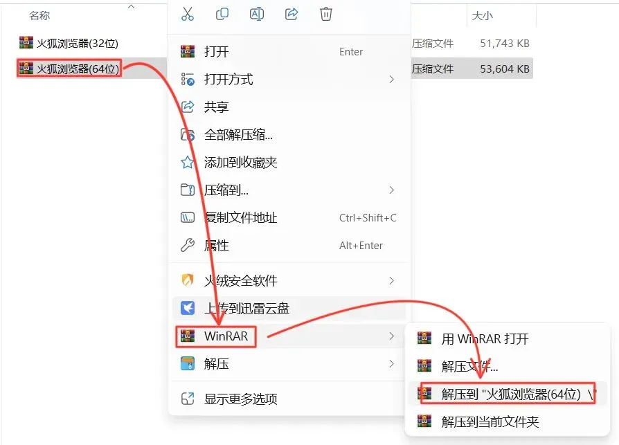 1.打开下载的火狐浏览器安装包,鼠标右击压缩包选择【解压到火狐浏览器\】。