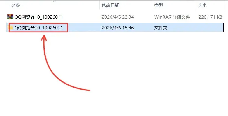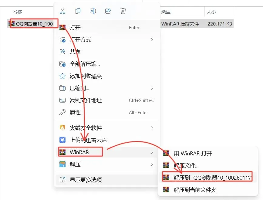 1.打开下载的QQ浏览器安装包,鼠标右击压缩包选择【解压到QQ浏览器\】。