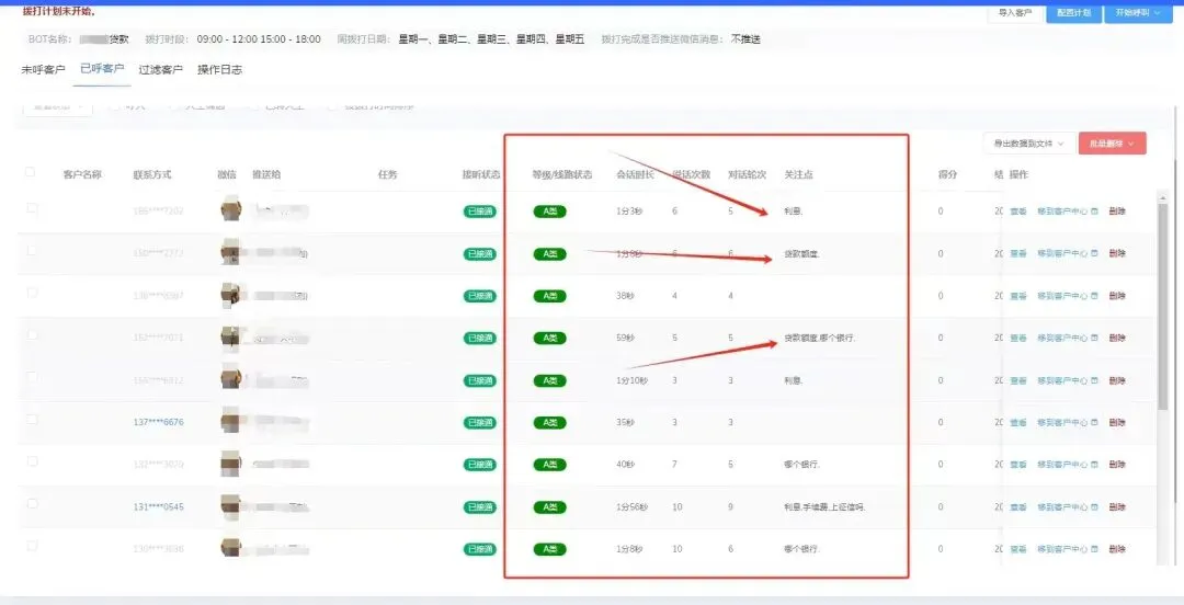 自动打电话机器人是一款非常高效的营销工具!他可以帮您自动拨打电话,自动应答,筛选客户,筛选出来有意向的客户之后,直接推送到您的微信上。机器人在拨打的过程中会自动分类:A/B/C/D类客户,您只需要跟进有意向的客户就行了。