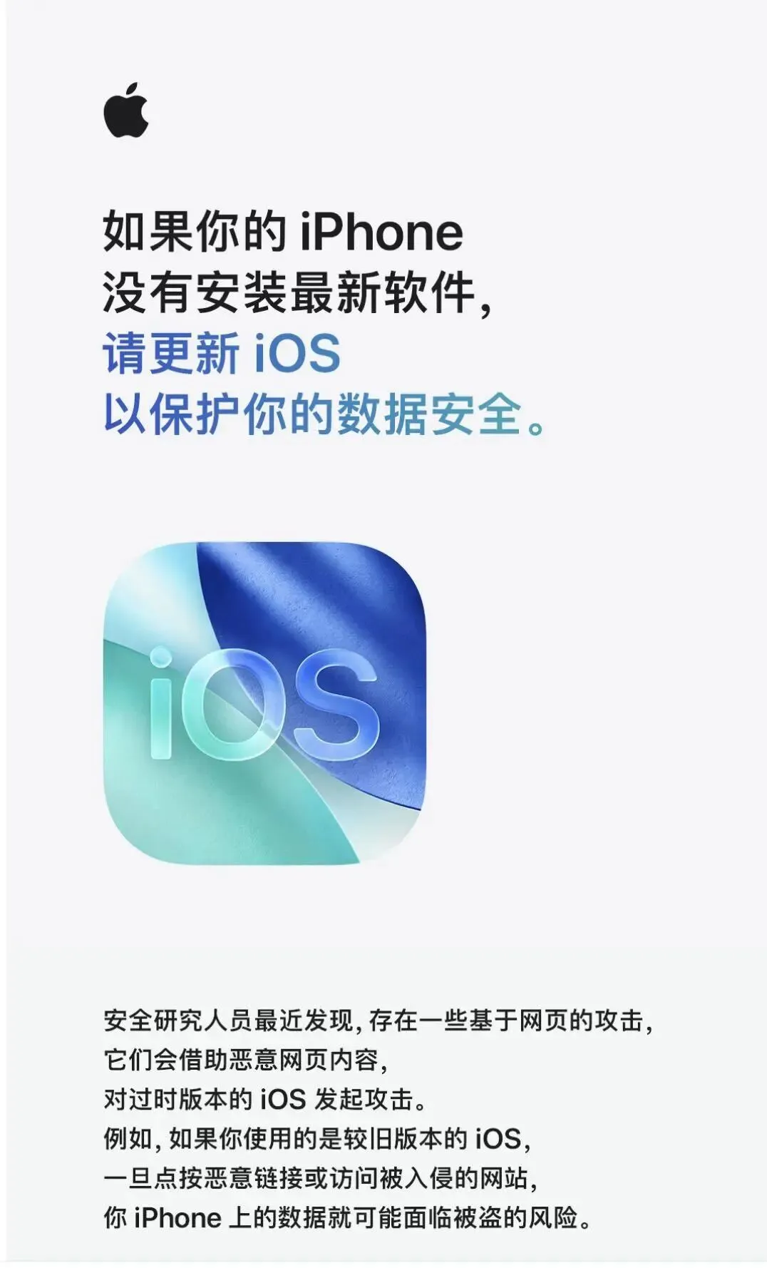 苹果提醒尽快更新最新系统应对网络攻击(受访者供图)