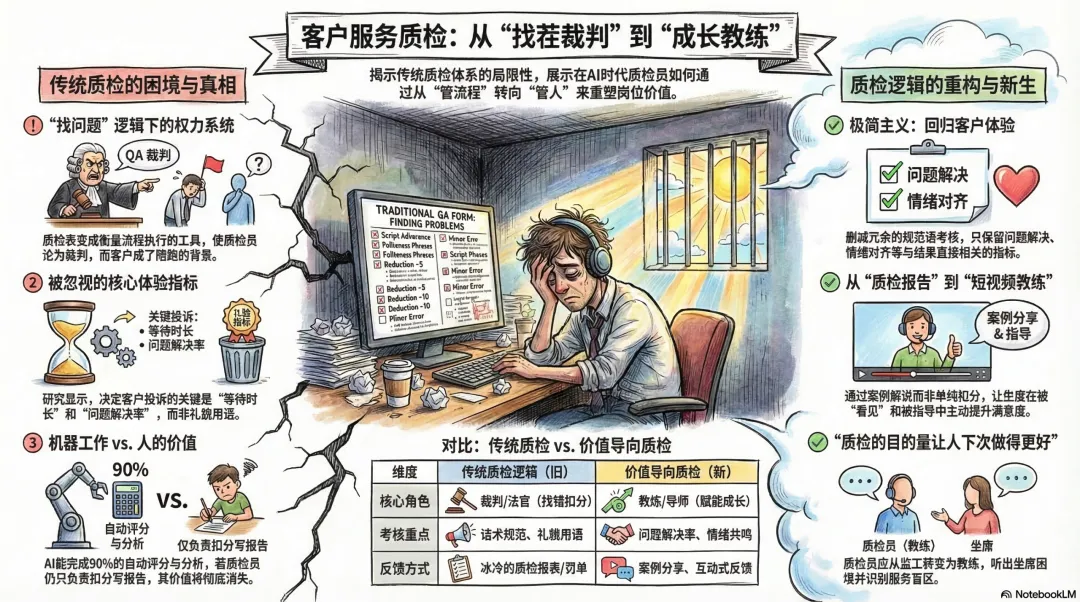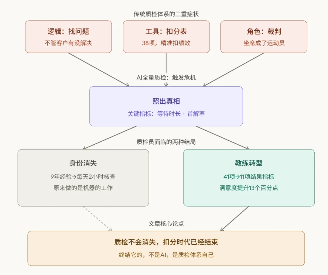 "质检的目的从来不是找到谁做错了。是让每个人下一次做得更好。你把这两件事的顺序弄反了,你的质检体系就是错的,不管用人还是用AI。"