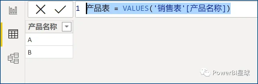 产品表 = VALUES('销售表'[产品名称])