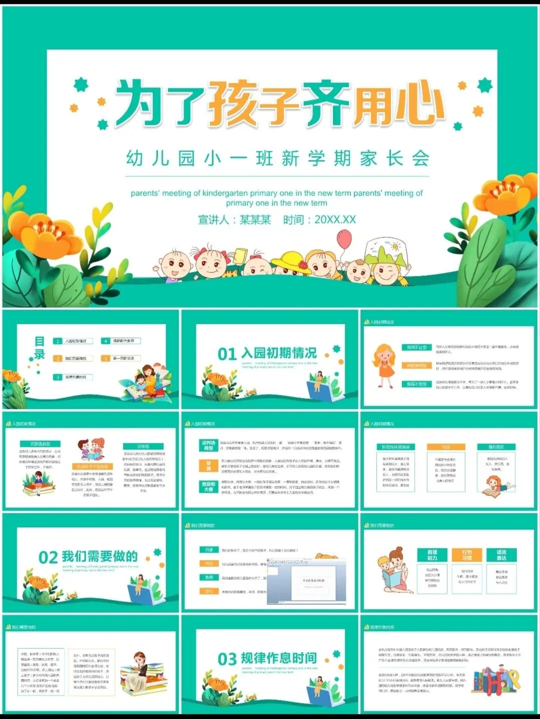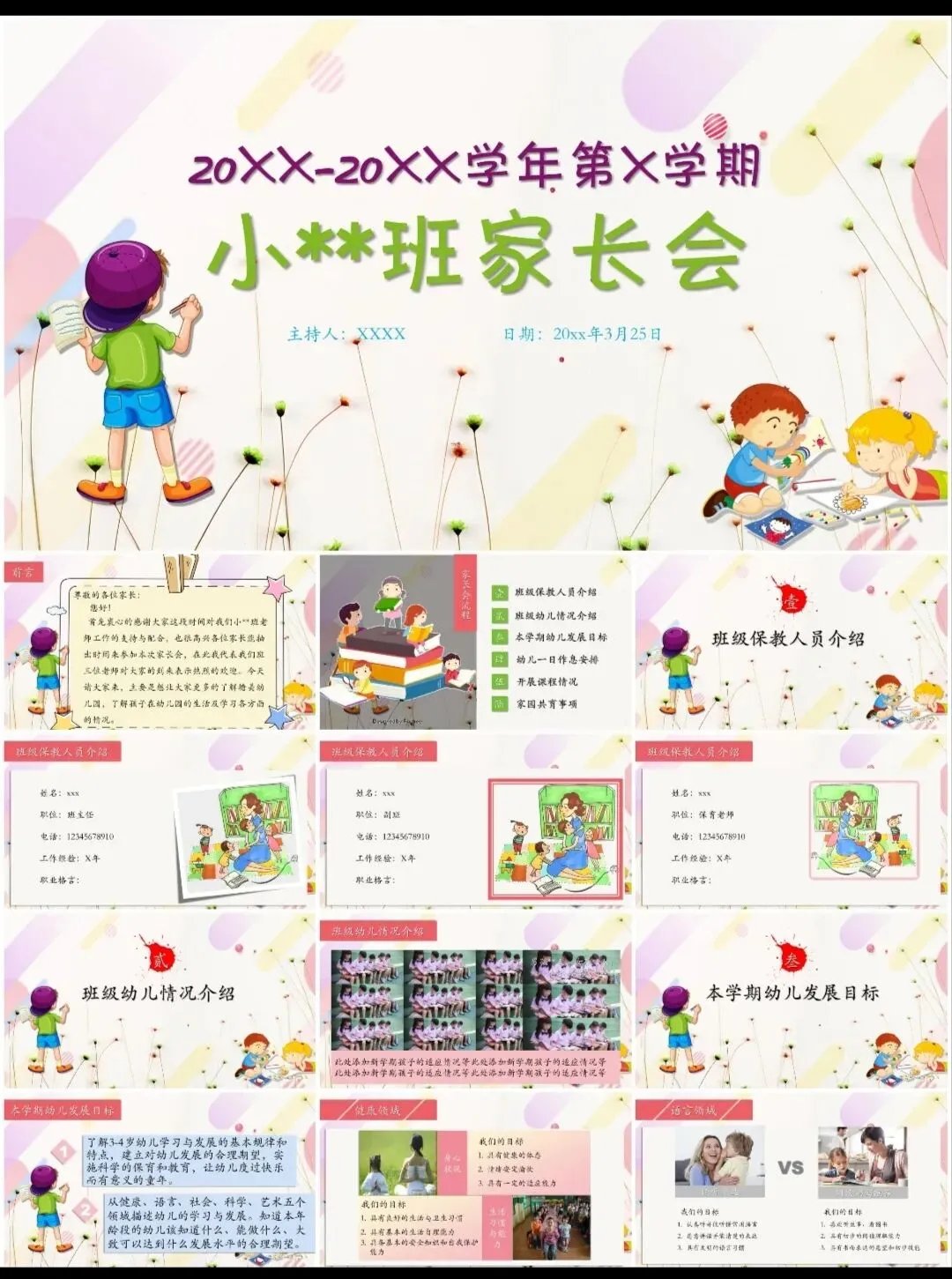 从新生入园适应到毕业季成长回顾,这套专为幼教工作者打造的【全场景家长会PPT】,用温暖的设计语言和科学的幼儿发展框架,帮您轻松展现园所专业度,建立家园共育的信任桥梁!