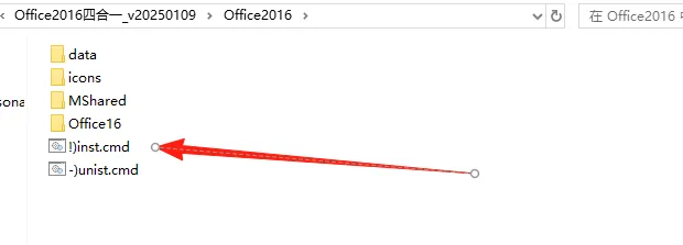 ●下载解压Office2016四合一,双击命令符 !)inst.cmd 执行安装
