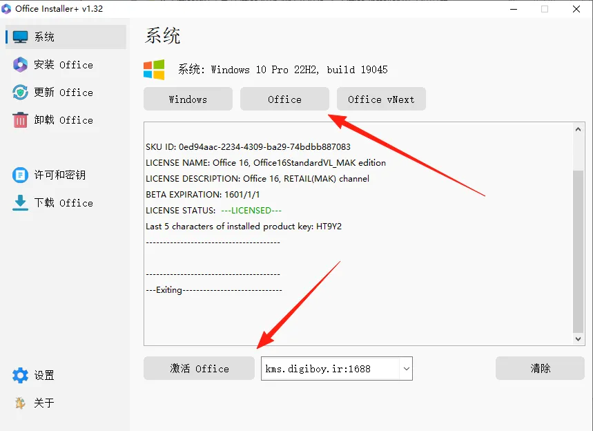 ●继续打开解压的 Office Installer v1.32中文版 文件夹,双击 Office Installer+_CHS 打开激活工具,选择Office 点击激活