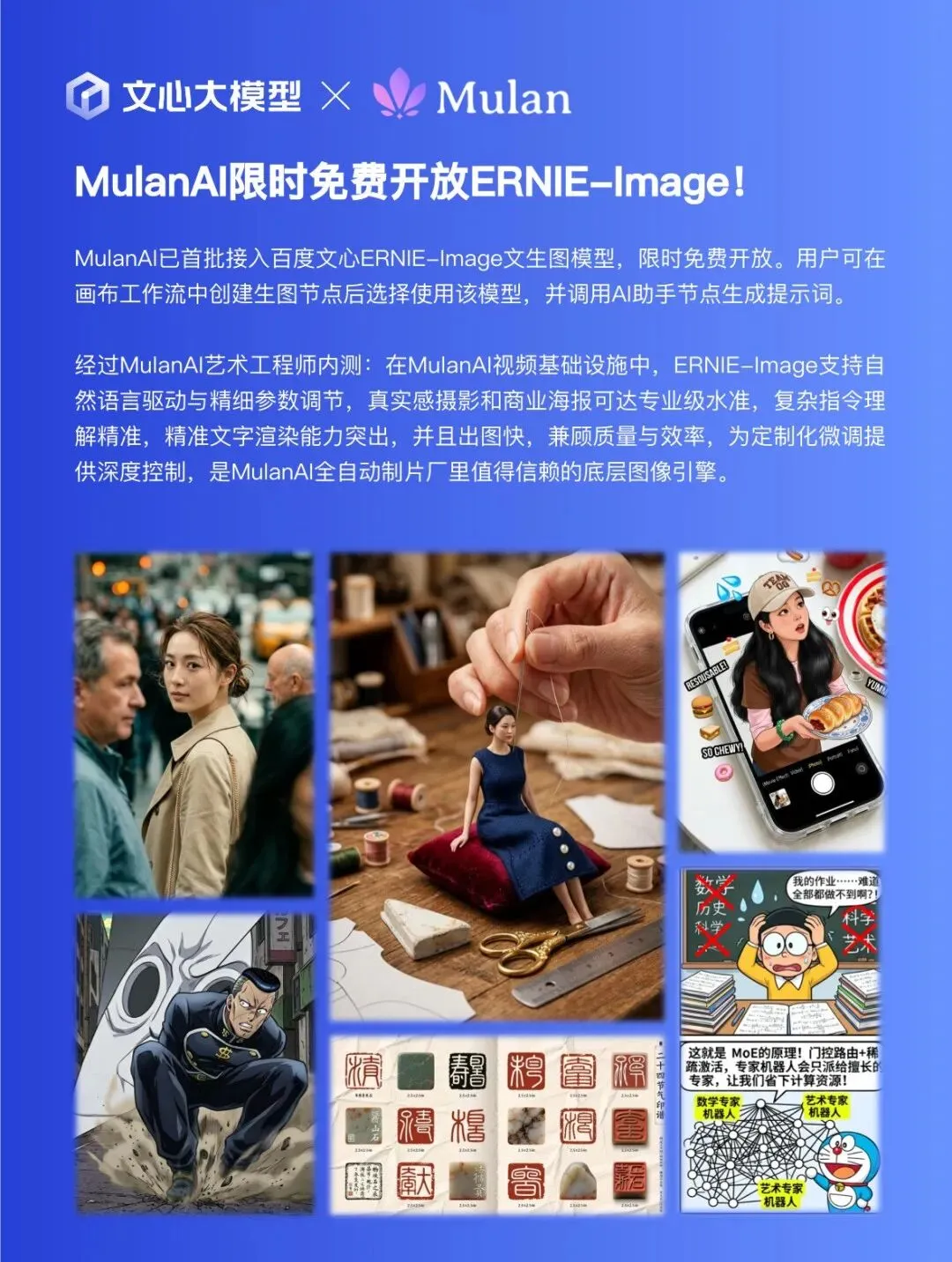 MulanAI限时免费开放文心文生图大模型ERNIE-Image!