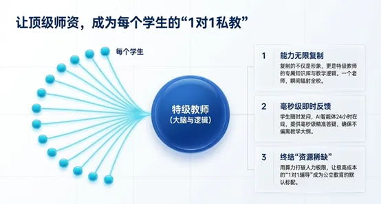 AI互动课深度复刻特级教师的知识体系与教学逻辑,实现优质资源无限复制,一位名师即可覆盖全校。