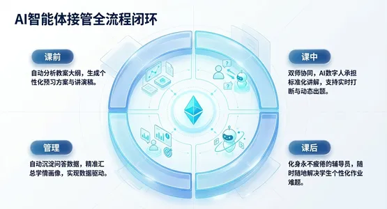 · 课中:AI互动授课,实时互动、动态出题,双师协同更高效