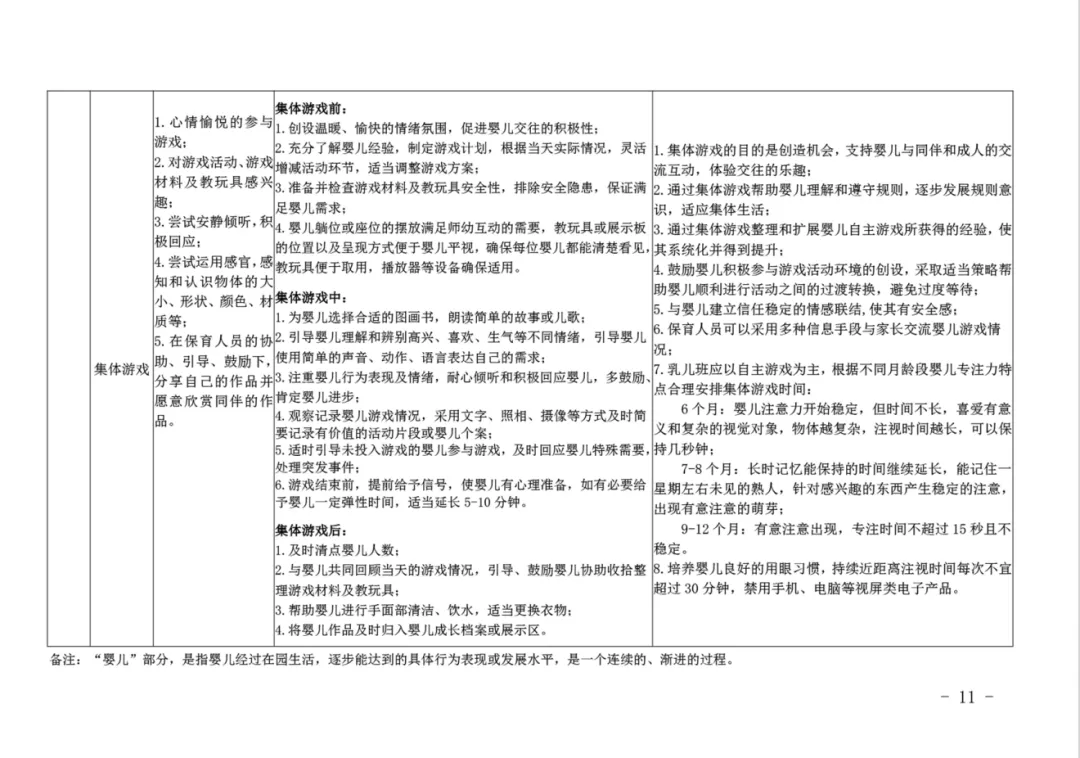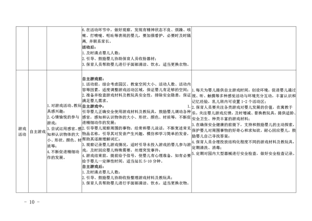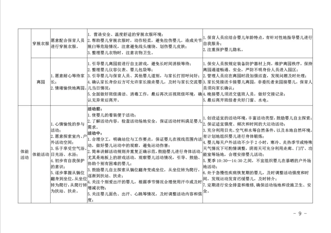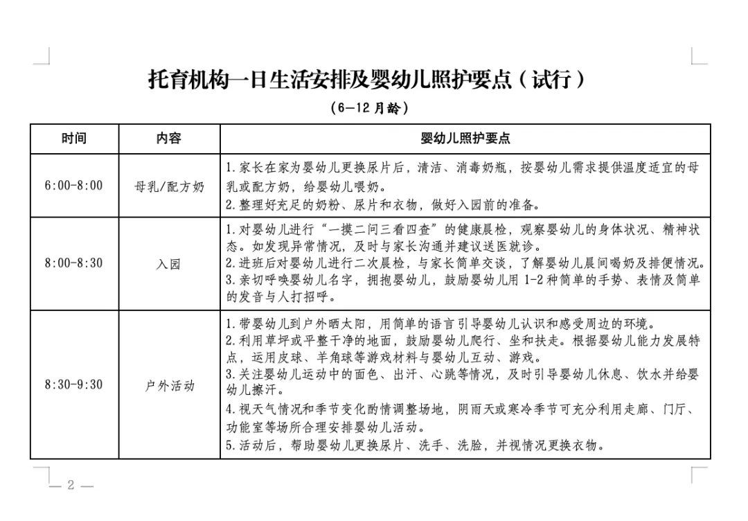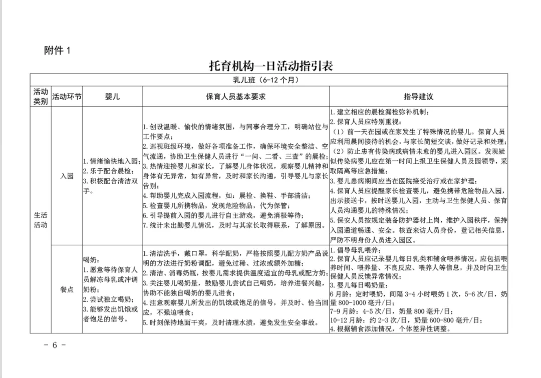 深圳市发布的《深圳市托育机构一日活动指引(试行)》和广西壮族自治区发布的《托育机构一日生活安排及婴幼儿照护要点(试行)》,对乳儿班等三个班型的一日活动都做了详细的指引,其中乳儿班最详细,一日活动安排的弹性也最大,文件预览及下载,见文末,供大家参考使用。