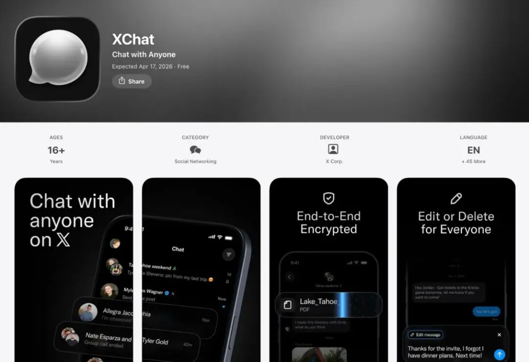 4月17日,XChat正式登陆iOS应用商店,全球同步上线。