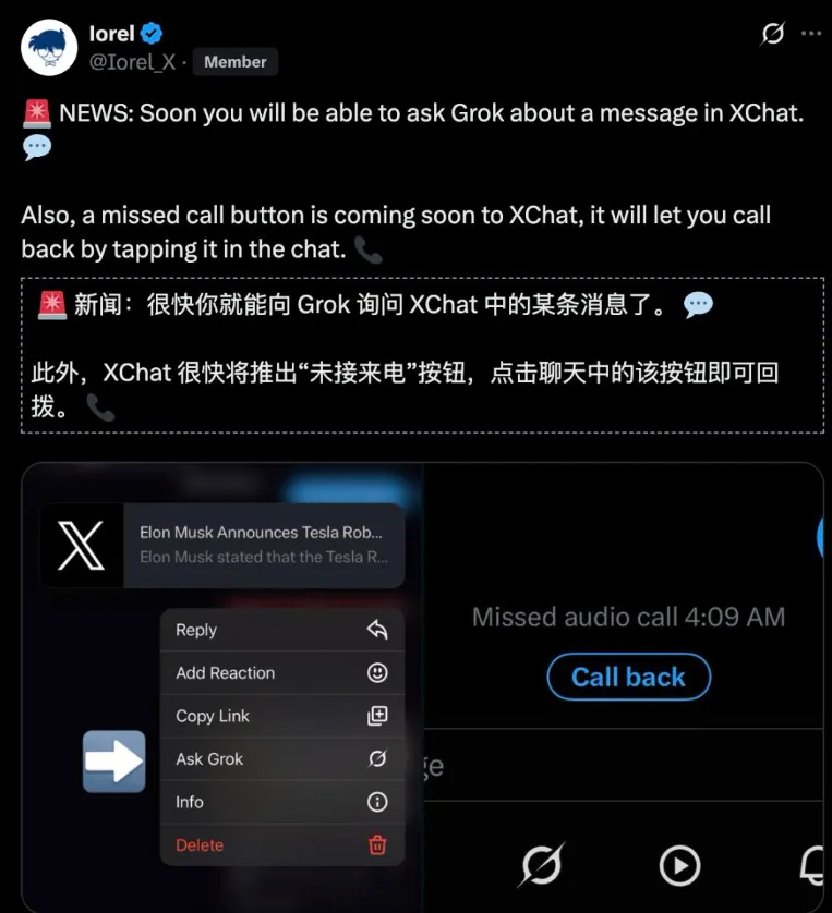 它有创新——Grok AI集成让聊天界面变成了随身助理。