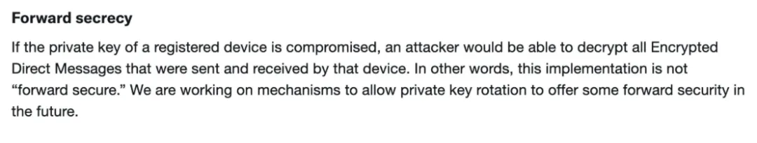 官方声明显示,XChat目前并不具备“前向保密”功能