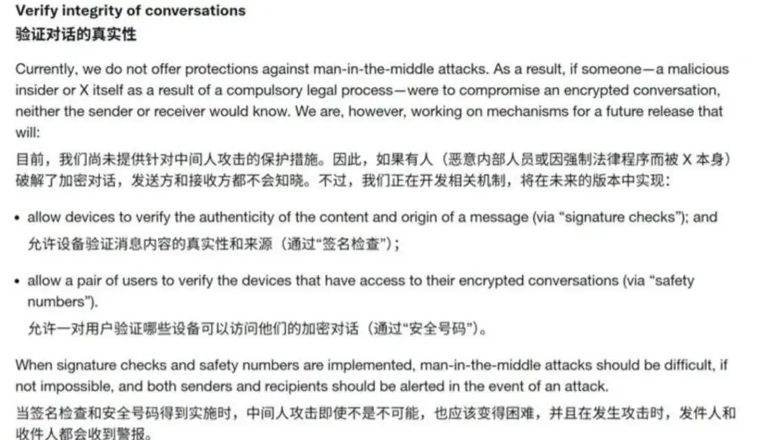 XChat自己也承认:"恶意内部人员或X平台本身"可能在当前设置下危及加密会话。