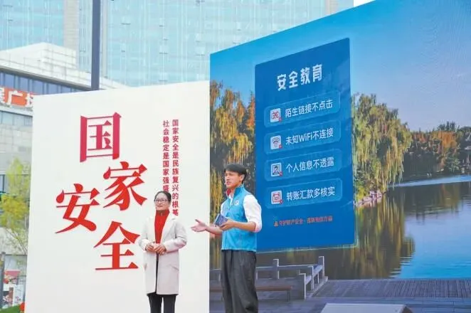 活动中,北京电影学院学生、社区群众演绎的情景剧讲述了身边的国家安全“陷阱”:“青年科研人员小张”攻克核心算法后兴奋地发朋友圈,险些泄露涉密文件,被海淀AI吉祥物“海小AI”及时拦截;公园里遛弯的“郭大妈”,差点掉进免费Wi-Fi陷阱,被社区安全志愿者小张及时劝止……这些取材于真实生活的场景,让不同年龄、不同圈层群众都能充分理解国家安全、重视国家安全,深刻体会到“国家安全就在身边”。