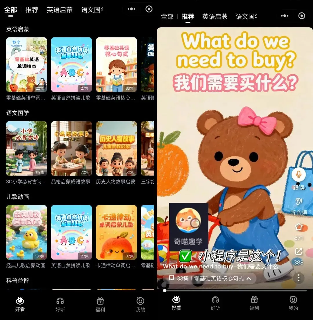 除了英语启蒙还有语文国学和科普内容,一个工具就能满足全科启蒙的需求,不用来回切换APP