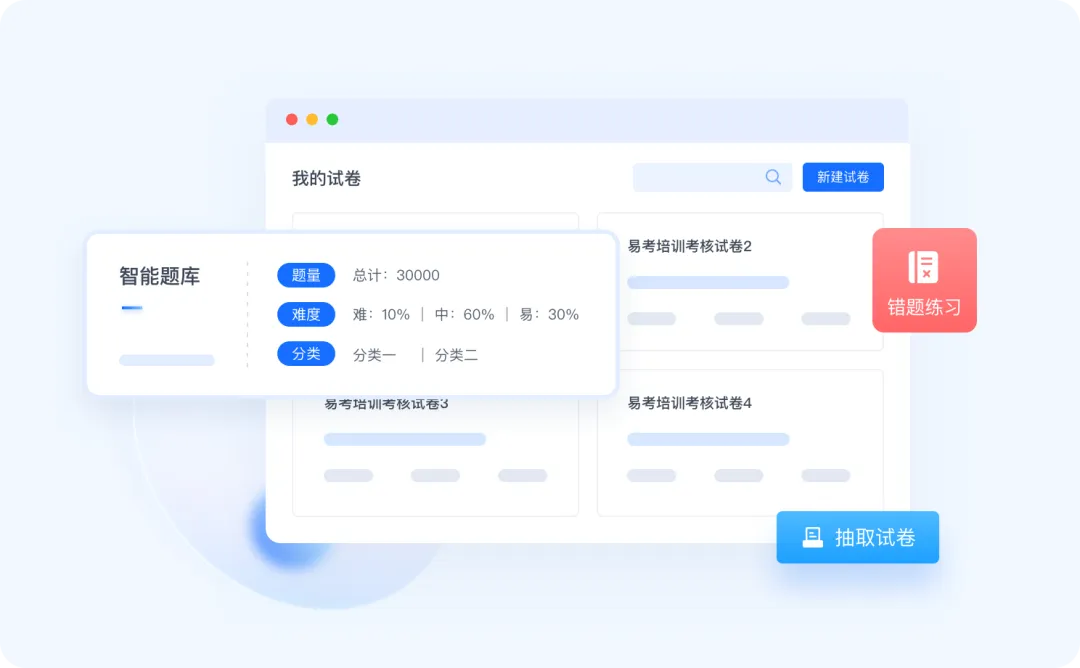 “易考”系统支持批量录题、标签分类管理,AI可根据难度、知识点、题型等维度生成平行试卷,实现智能组卷与试题乱序。主办方只需设定参数,系统即可快速生成多套等质等量试卷,大幅减少人工出题与排考耗时,同时满足个性化测评需求。