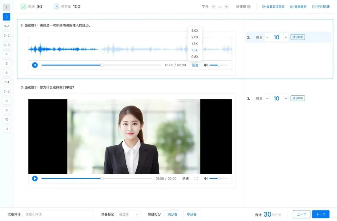 客观题由系统自动判分,秒级出结果、零误差;主观题支持在线协同评卷与双盲阅卷,AI 提示关键得分点,减少人工阅卷的主观偏差。编程题、实操题等复杂题型也可通过规则自动评分,全面提升阅卷效率与公正性。
