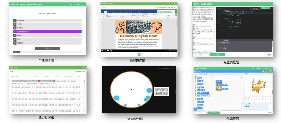 “易考”系统内置认知能力题、职业性格测评、专业编程题、音视频题、实操题等多种题型,可适配职业技能考核、综合能力测评、教学诊断等不同场景,让考核形式更丰富、评价更全面。