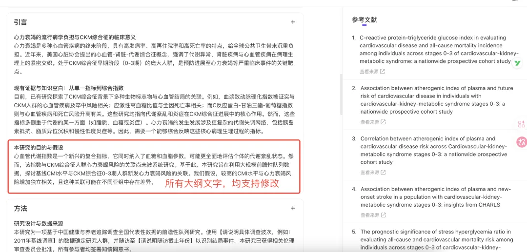 生成的不是千篇一律的模板,而是与你研究高度契合的个性化内容。