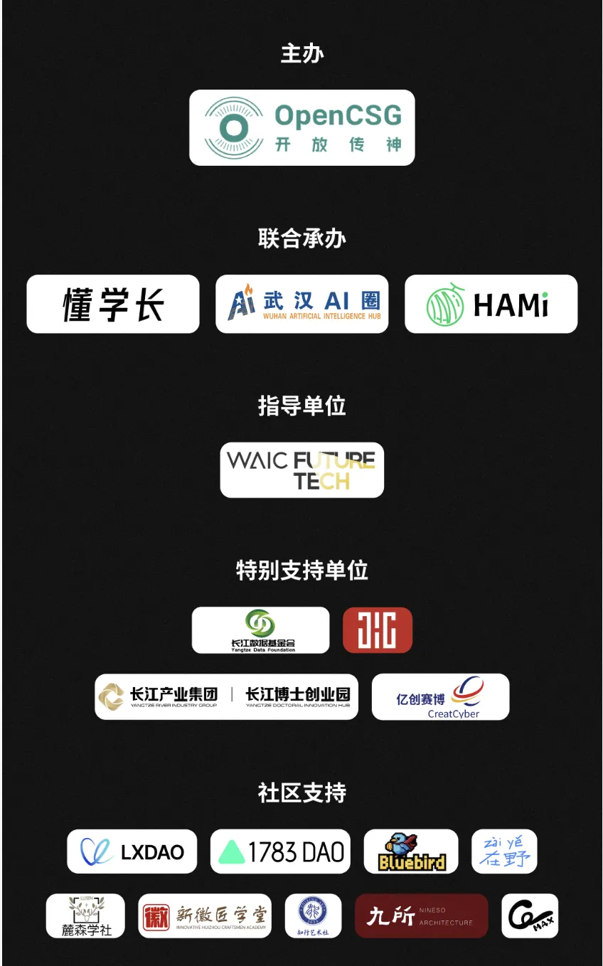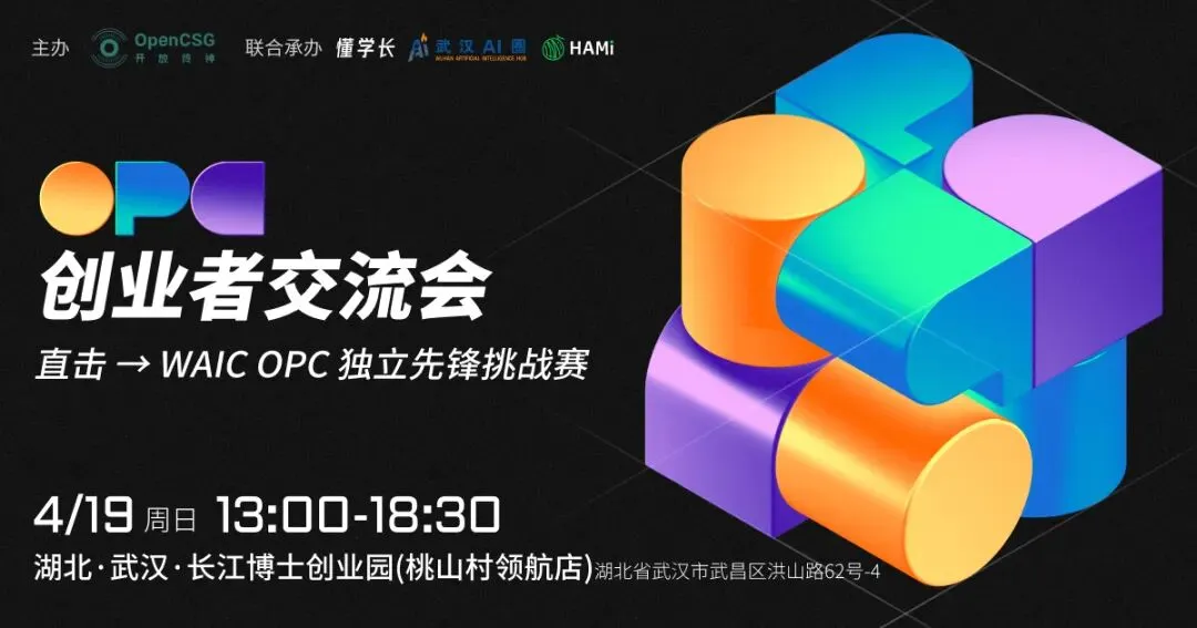 4 月 19 日,OpenCSG(开放传神)联合武汉AI圈、懂学长,Hami在武汉落地一场面向独立开发者与 AI 创业者的线下交流活动。本场活动由长江数据基金会、宜昌金辉大数据产业发展有限公司特别支持,WAIC Future Tec特别指导。