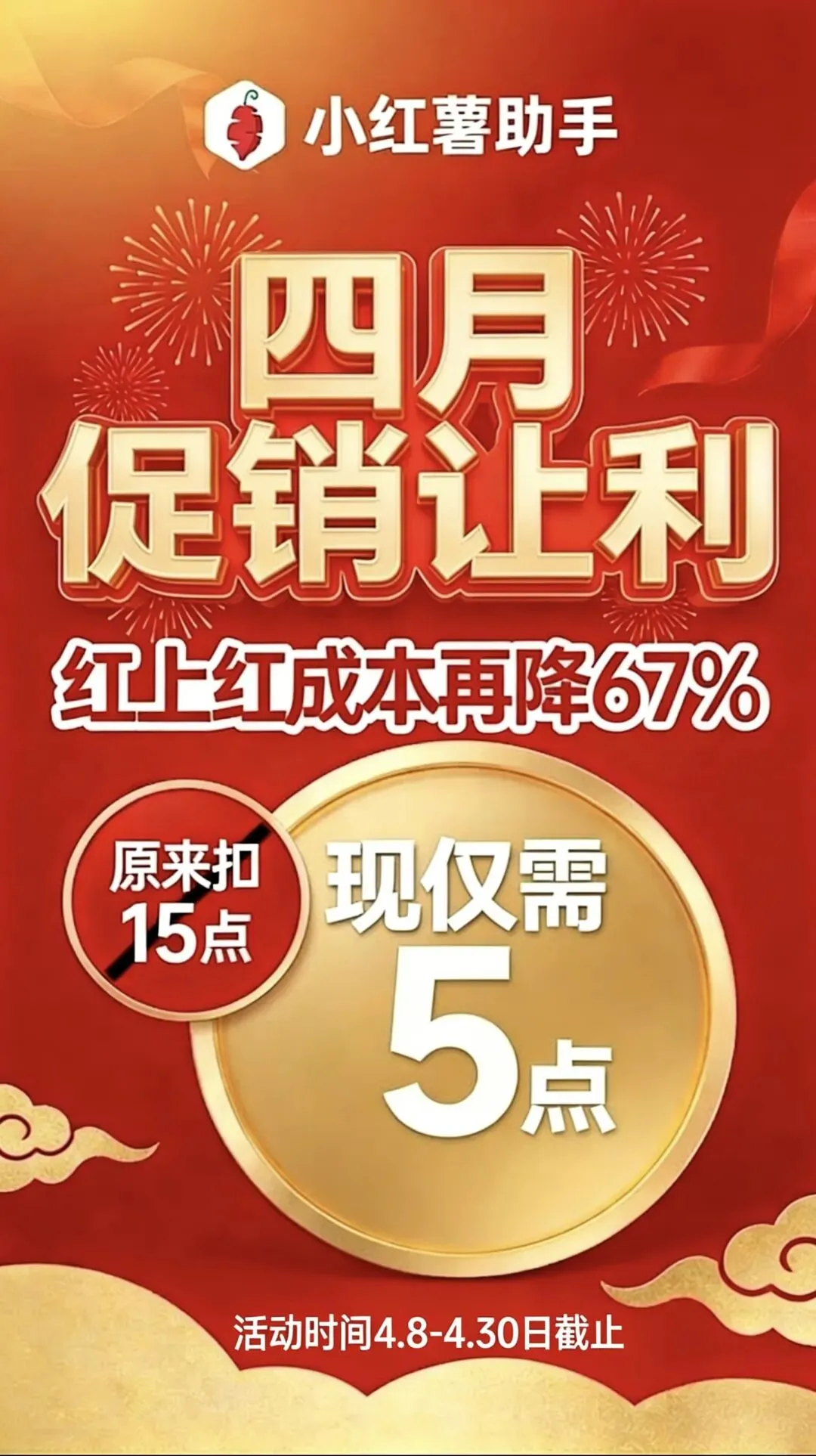 红上红成本再降67%,现仅需5点(原来扣15点)